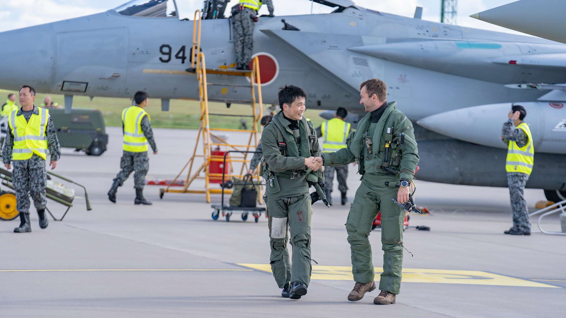 Die beiden F-15 der Japan Air Self-Defense Force (JASDF) starteten bereits Mitte September in Japan. Nach Angaben der Deutschen Luftwaffe führte sie ihr Flug über die USA und Kanada zunächst nach Großbritannien und schließlich nach Deutschland. Begleitet wurden sie beim Einflug in den deutschen Luftraum am 23. September von Eurofightern des Taktischen Luftwaffengeschwaders 73 „Steinhoff“.